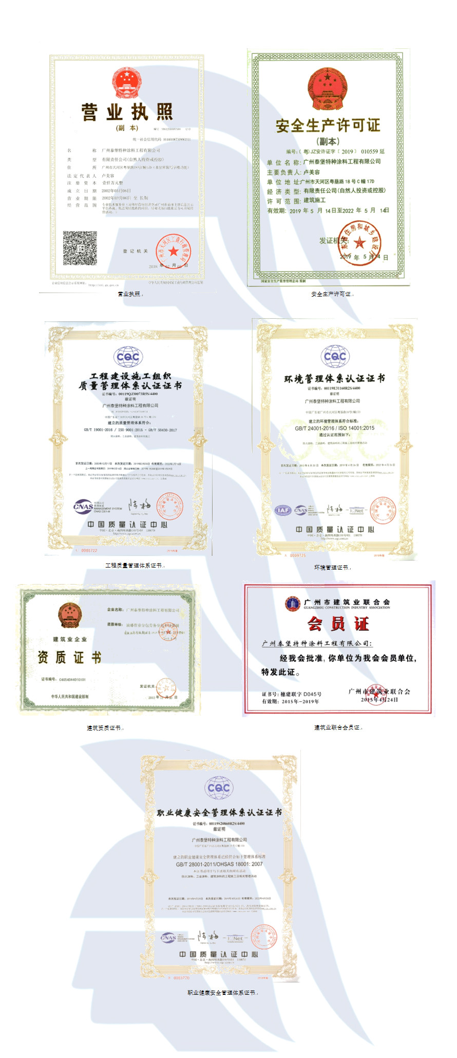 首页  > 资质荣誉 > 广州泰堡特种涂料工程有限公司