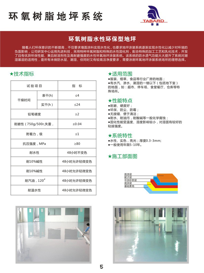 3、系统特性:水性、实色、亮光;厚度0.3-3mm;一般使用年限5-10年。